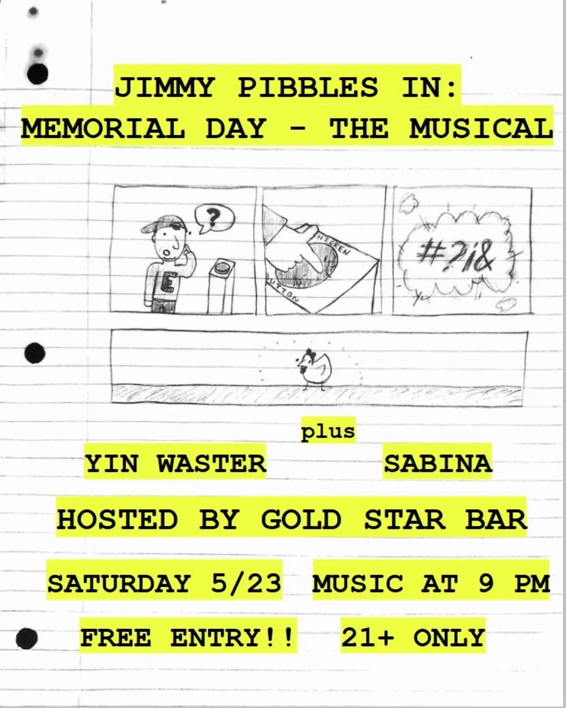 Come see Yin Waster with Sabina and Jimmy Pibbles & The Runny Dribbles at Gold Star Bar!